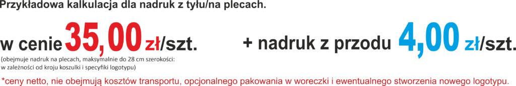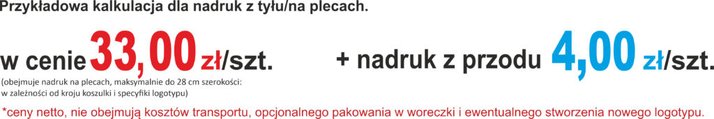 Strona główna » Koszulki Męskie Koszulki z nadrukiem - Męskie Cena dla koszulki z nadrukiem: nakład 1-10 szt. 20 szt. 30 szt. 50 szt. 100 szt. Specyfikacja Koszulki Cena dla koszulki z nadrukiem: nakład 1-10 szt. 20 szt. 30 szt. 50 szt. 100 szt. Specyfikacja Koszulki Koszulki typu Basic występują w kolorach: Wyceń swoją Koszulkę! Koszulki Damskie